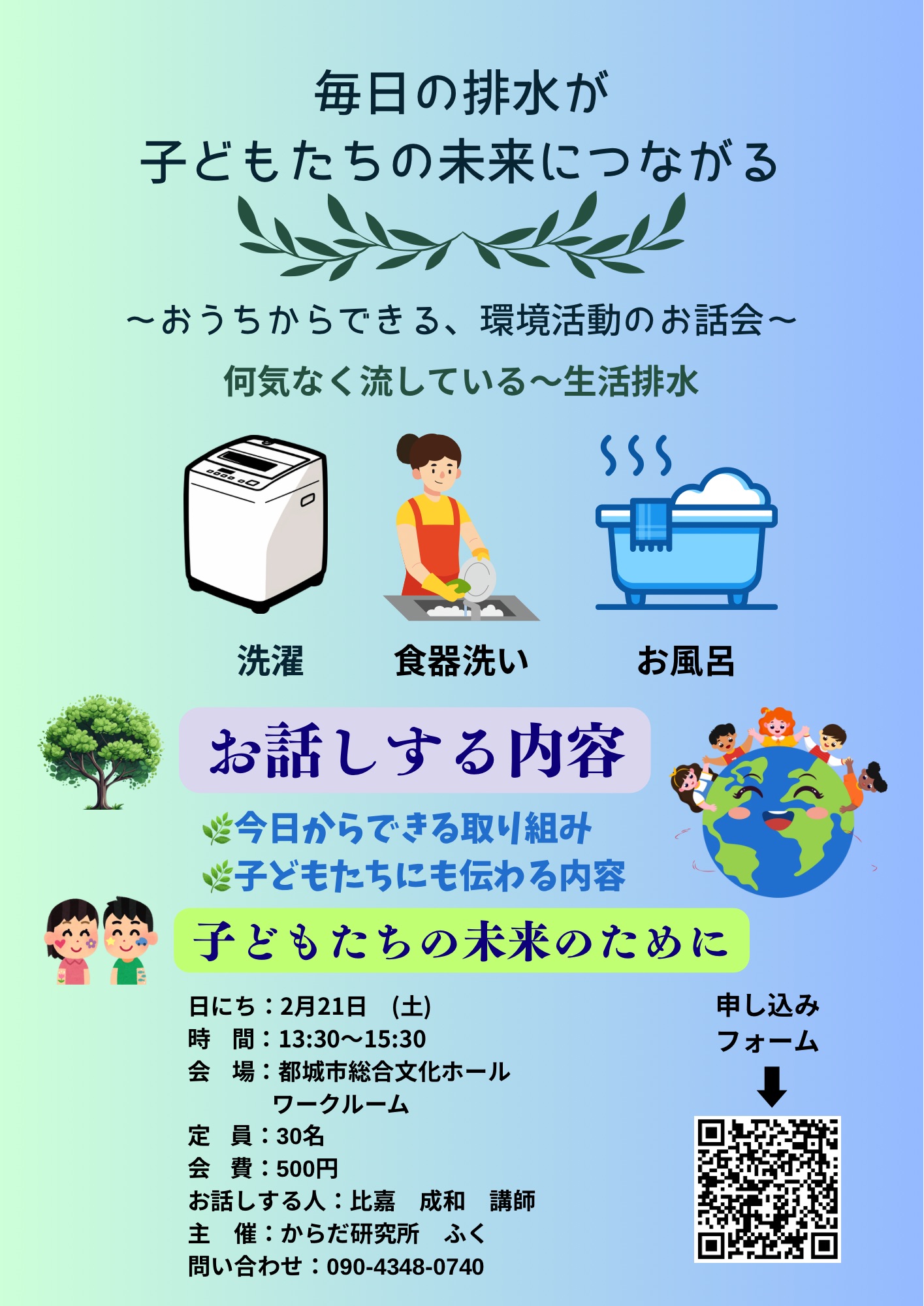 2026/2/21 13:30〜 | 宮崎県都城市北原町1106-100 都城市総合文化ホール ワークルーム リアル | 地球再生プロジェクト | 比嘉成和 | からだ研究所 ふく 福重雄一 500円 | 0986 23 7140 |
